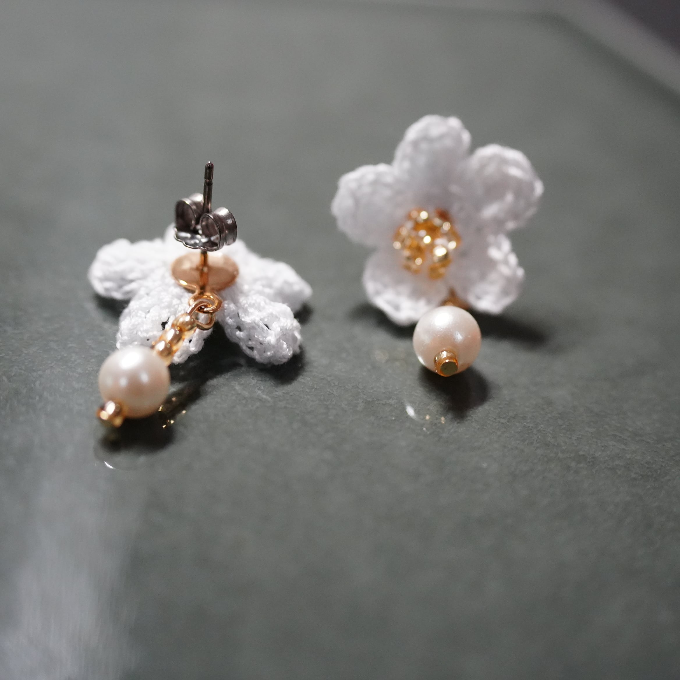ご不明な点やご質問は、ショップのお問い合わせからお気軽にお寄せください。МREのビーズクロッシェ 白いお花のチタンピアスで、あなたのスタイルをさらに素敵に演出してください!